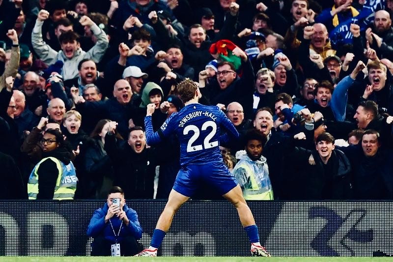Fulham came close again on the 62nd minute after a Chukwueze cross to Jimenez went wide, that man Mykolenko did just enough to put him off. We had a made a couple of substitutions, beto for Barry and George for Armstrong and the latter had an impact, after some good play, he threaded a ball through to Mykolenko who crossed it to Dewsbury-Hall who slotted it home in the 76th minute and he celebrated in front of the amazing travelling away fans.